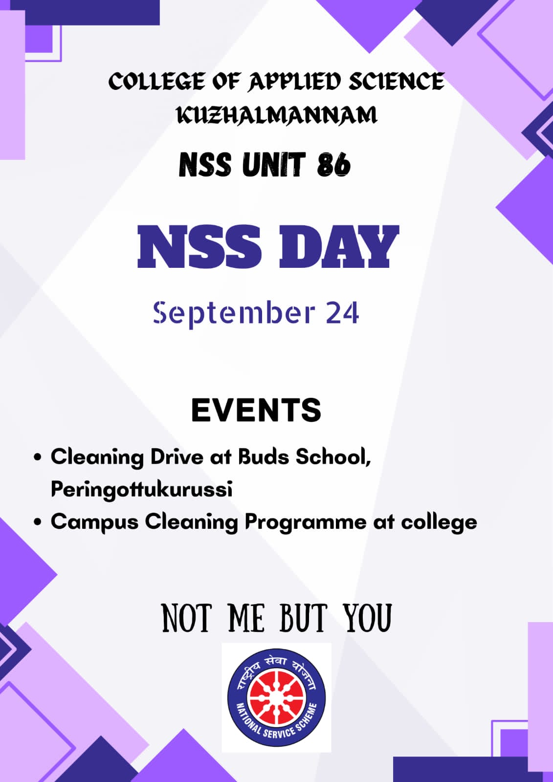 NSS Unit 86 of CAS Kuzhalmannam observed NSS Day on 24th September 2025 with meaningful service activities involving both first-year and second-year NSS volunteers.